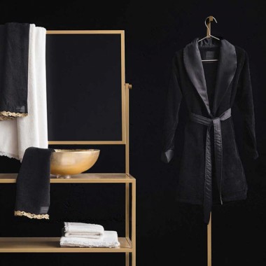 100% хлопок плотностью 550 гр/м2. Классический халат с шелковым воротником и окантовкой на рукавах, поясом, который фиксируется для удобства. Длина до колен. Халат в подарочной коробке.
